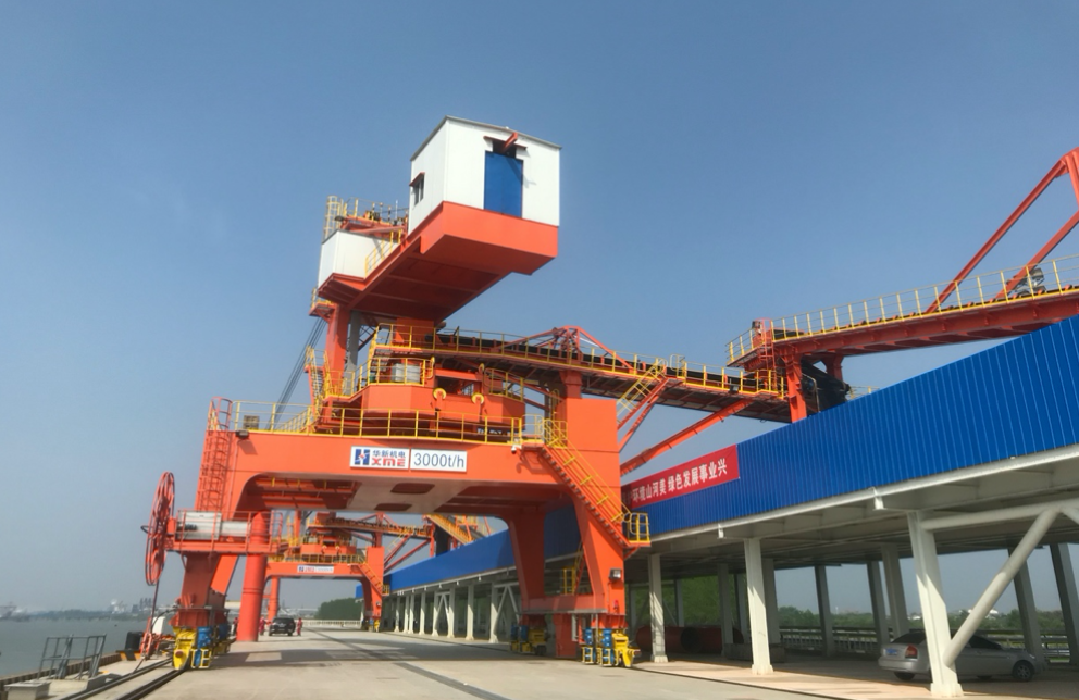 為適應(yīng)電廠、港口等用戶的需求,公司2003年為連云港新陸橋設(shè)計總包的3000/1000t/h、2005年為太倉電廠設(shè)計總包的1500/600t/h裝卸一體機(jī),現(xiàn)已為用戶提供了可裝多種物料如煤、砂石料、水泥、石膏的裝船機(jī)、全封閉帶除塵環(huán)保裝船機(jī),生產(chǎn)的最大生產(chǎn)率裝船機(jī)為南京西壩的4500t/h裝船機(jī),后又為池州九神山提供了5臺3000t/h裝船機(jī)于2019年6月正式投入使用。