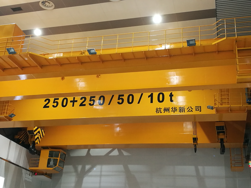 公司設(shè)計(jì)制造的所有橋機(jī)及門(mén)機(jī)的起升小車(chē)系消化吸收國(guó)外先進(jìn)技術(shù),結(jié)合我國(guó)當(dāng)時(shí)的配套水平,綜合研究院多年的技術(shù)研制經(jīng)驗(yàn),遵照GB/T3811-2008《起重機(jī)設(shè)計(jì)規(guī)范》、GB/T14405-2011《通用橋式起重機(jī)》等標(biāo)準(zhǔn),同時(shí)參照國(guó)外有關(guān)起重機(jī)標(biāo)準(zhǔn)及歐洲搬運(yùn)協(xié)會(huì)主流橋式起重機(jī)機(jī)型研制而成,節(jié)能減排,經(jīng)濟(jì)環(huán)保,特別適合地下廠房、新型工廠及大噸位貴重物件的吊裝、搬運(yùn)就位工作。公司首臺(tái)臺(tái)橋機(jī)為1990年研發(fā)、1992年投入生產(chǎn)的寧波北侖電廠80/20t橋式起重機(jī),公司首臺(tái)臺(tái)門(mén)機(jī)為1994年向富春江發(fā)電廠提供的2×20t尾水門(mén)機(jī)。近三十年的發(fā)展,已向國(guó)內(nèi)外眾多優(yōu)質(zhì)客戶提供千余臺(tái)橋機(jī)和門(mén)機(jī)設(shè)備,是目前業(yè)內(nèi)最先進(jìn)、最成熟的低凈空小車(chē)結(jié)構(gòu)。目前制造過(guò)的單小車(chē)橋機(jī)最大額定起重量為800t,雙小車(chē)橋機(jī)最大額定起重量為500t+500t,具備1500噸橋機(jī)的設(shè)計(jì)制造能力;制造過(guò)的門(mén)式起重機(jī)最大額定起重量為900t的造船龍門(mén)吊。